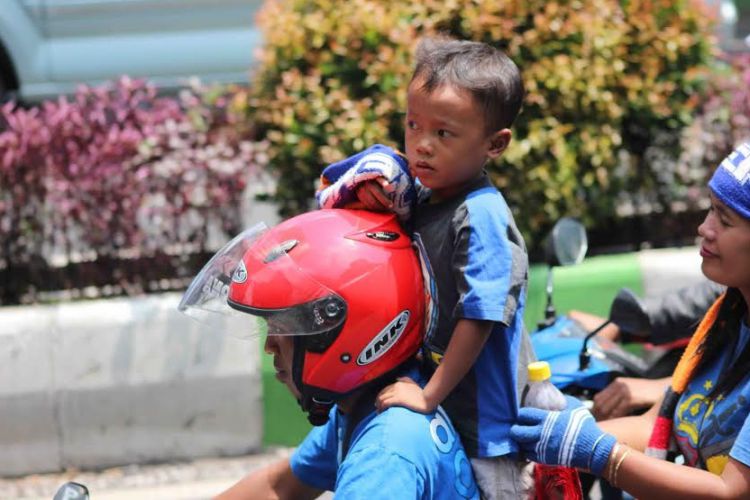 Banyak peserta konvoi yang tak menggunakan helm, boncengan bertiga dan menyertakan anak-anak.