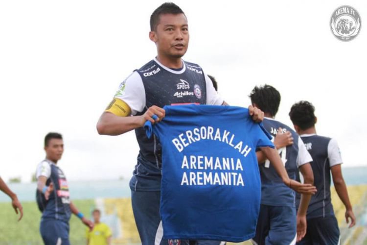 Saat Hanif Sjahbandi mencetak gol kedua, kapten tim Arema, Hamka Hamzah mengambil sebuah baju bertuliskan ‘Bersoraklah Aremania Aremanita’.