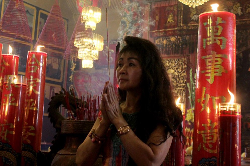 Secara khusyuk umat Tri Darma, yang terdiri dari Konghucu, Buddha dan Tao, bersembahyang bersama.