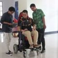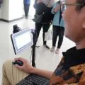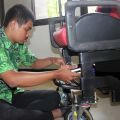 Periset dari Universitas Brawijaya (UB) saat mengoperasikan sebuah kursi roda pintar berbasis komputer untuk kaum difabel di Malang.