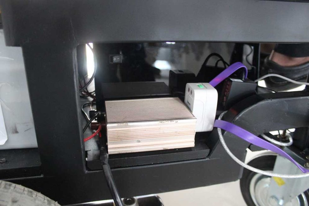 Perangkat kelistrikan yang terpasang pada bagian bawah kursi roda pintar untuk difabel.