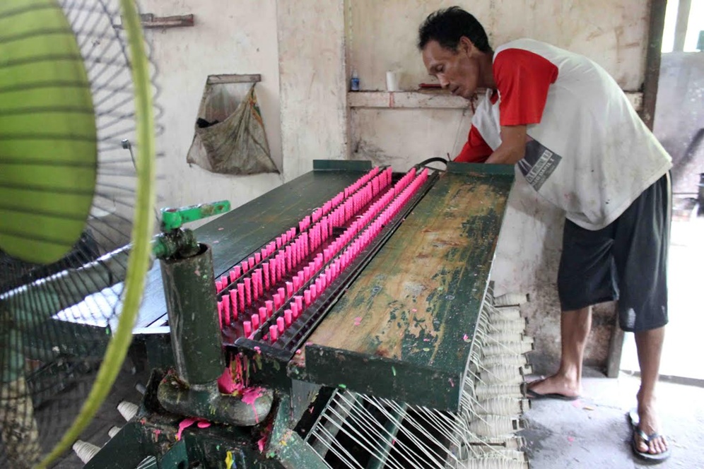 Menengok kesibukan para karyawan saat membuat lilin altar menjelang perayaan Natal di desa Kendalpayak, kabupaten Malang.