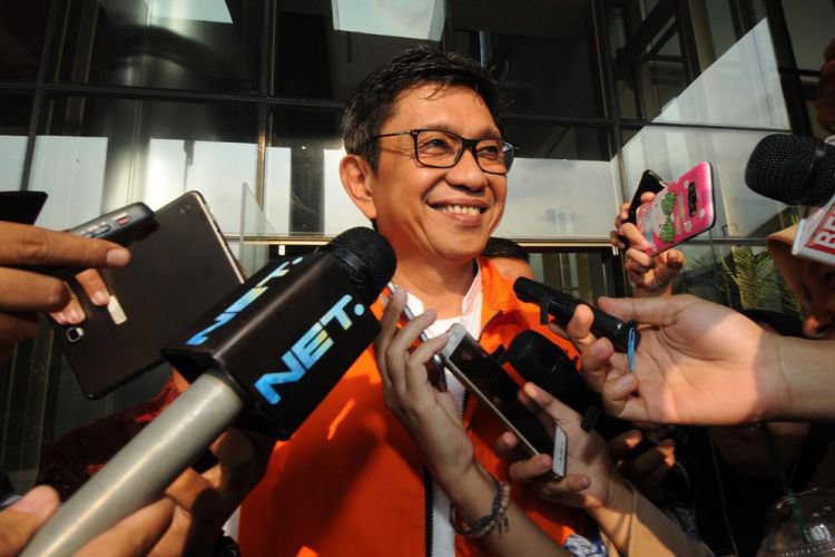 Wali Kota Batu, Eddy Rumpoko tebar senyuman usai diperiksa KPK. ER, demikian biasa disapa, menjalani pemeriksaan lanjutan oleh tim penyidik KPK di Jakarta, Senin (2/10). ER terjaring Operasi Tangkap Tangan (OTT), Sabtu (16/9). ER ditetapkan tersangka atas dugaan menerima komisi dari proyek belanja modal dan pengadaan meubelair di Pemkot Batu tahun anggaran 2017.