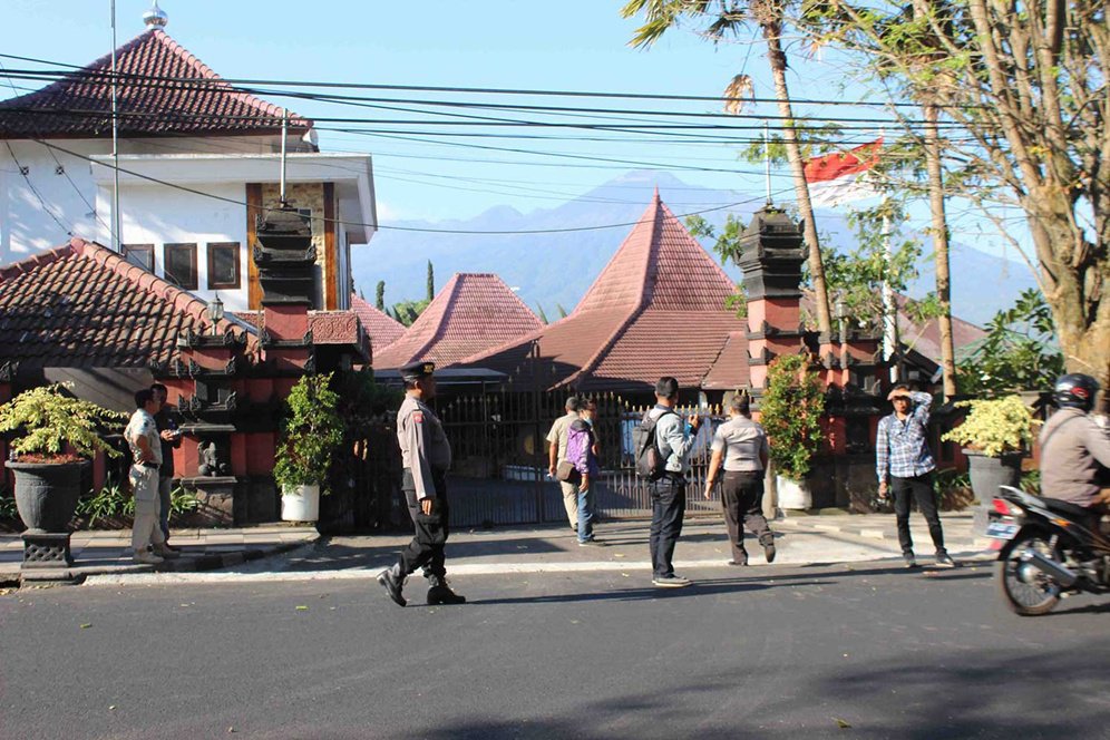 Suasana rumah dinas Eddy Rumpoko yang terlihat dijaga anggota kepolisian.