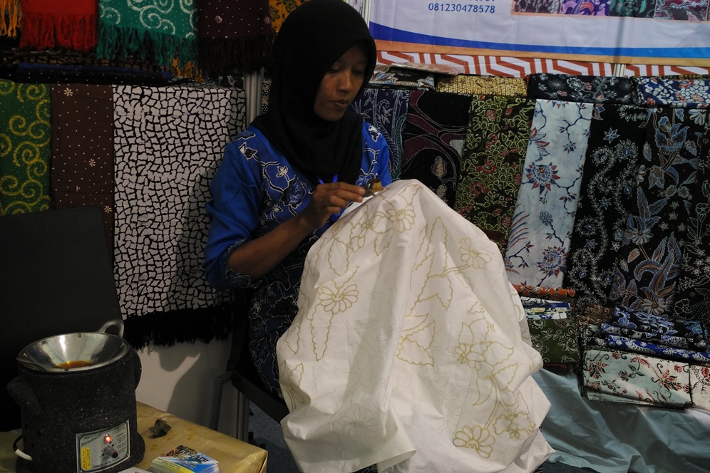 Tak hanya dari Malang, berbagai pelaku UMKM dari beberapa daerah di Jawa Timur pun turut memeriahkan Parade UMKM BRI di Kota Malang ini. Salah satunya, Batik Puri Putri asal Pacitan ini. Uniknya, UMKM yang satu ini menampilkan langsung proses pembuatan batik tulis di booth.