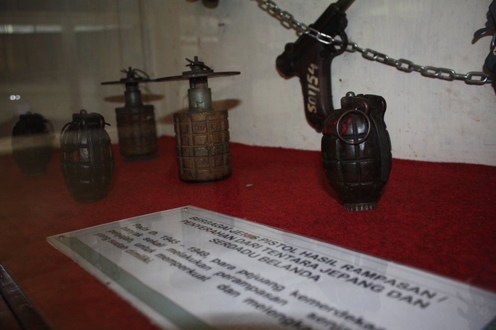 Berbagai jenis granat tangan hasil rampasan dan hasil penyerahan tentara Jepang dan serdadu Belanda.