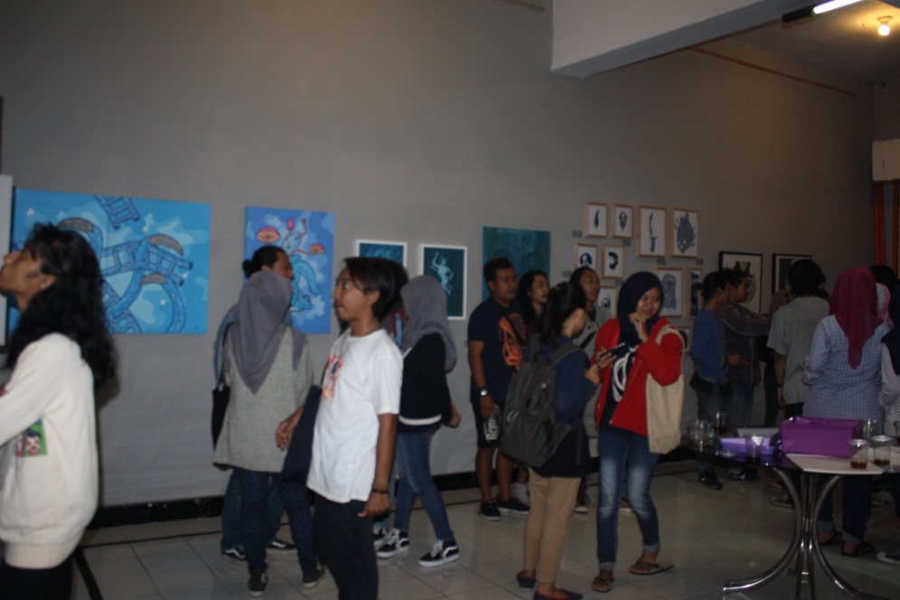 Suasana dalam ruang pameran yang sebagian besar terdiri dari mahasiswa