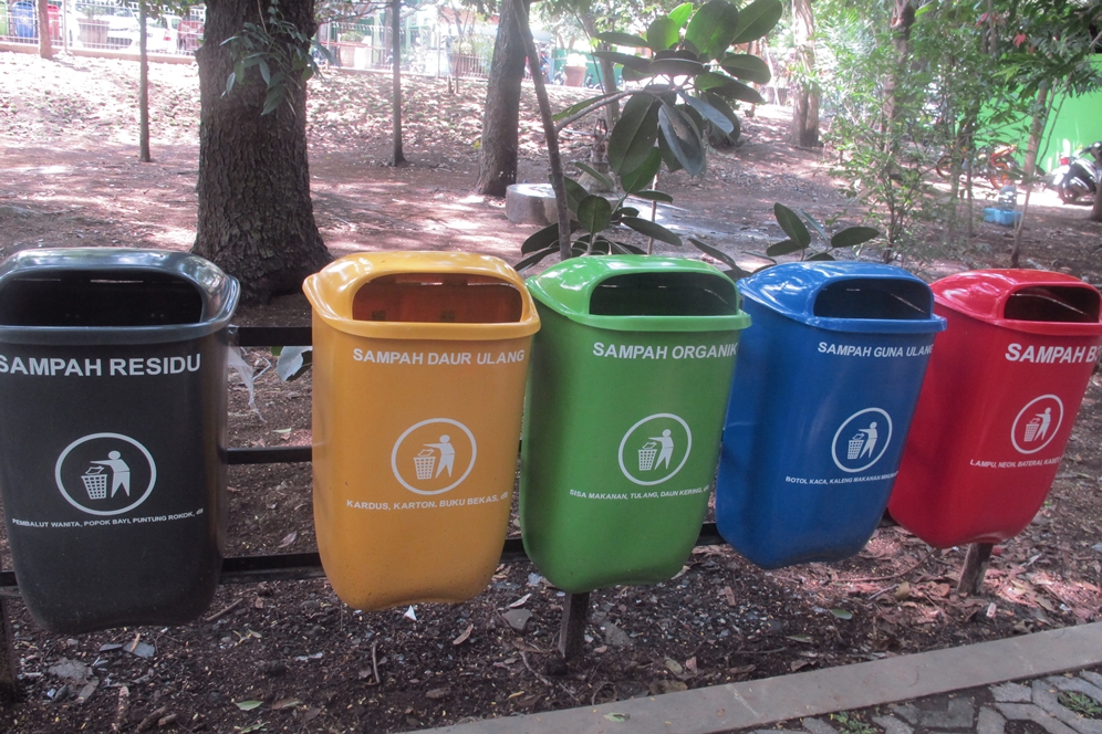 Terdapat lima jenis tempat sampah dengan pembagian jenis sampah yang berbeda.