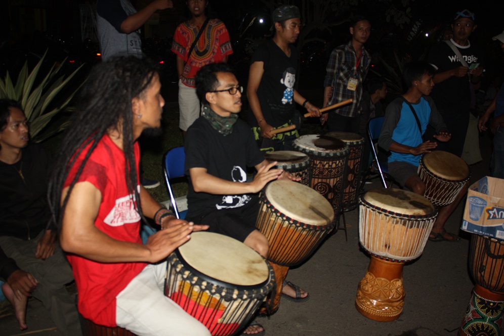 Arek-arek Malang memeriahkan Ngijabi dengan pertunjukan perkusi