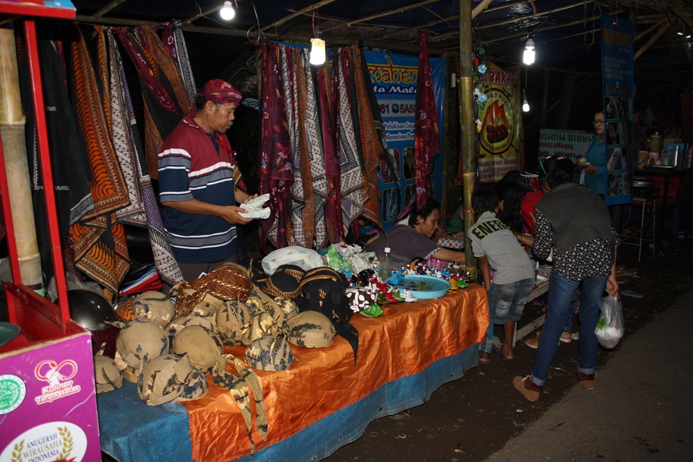 Stand blangkon, menjajakan kain dan topi tradisional.