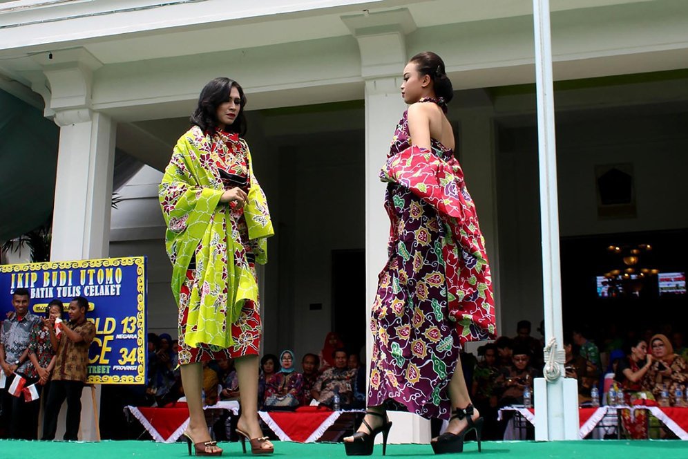 Puluhan model dengan mengenakan koleksi batik Tjelaket Malangan memamerkan karya-karya para desainer lokal. Alunan musik gamelan bertalu-talu mengiringi satu per satu langkah para model seksi tersebut.