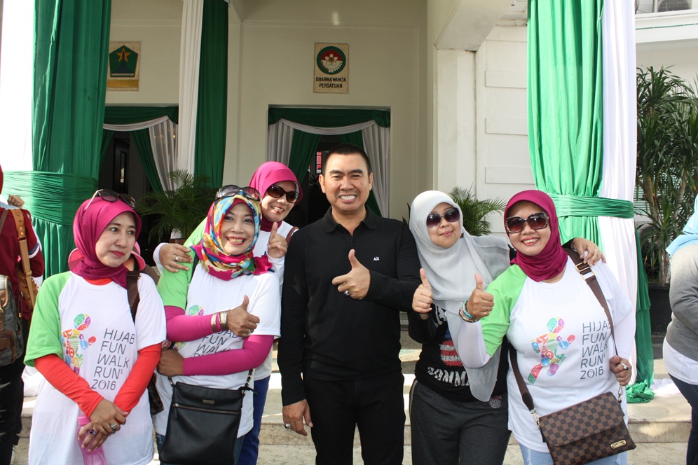 Hak Cipta: © 2016 merdeka.comHari minggu 10 April 2016, jalan balai kota diramaikan oleh aksi jelan sehat wanita berhijab dalam rangkaian acara Hijab Fun Walk and Run 2016 yang diselenggarakan oleh Zoya Malang.