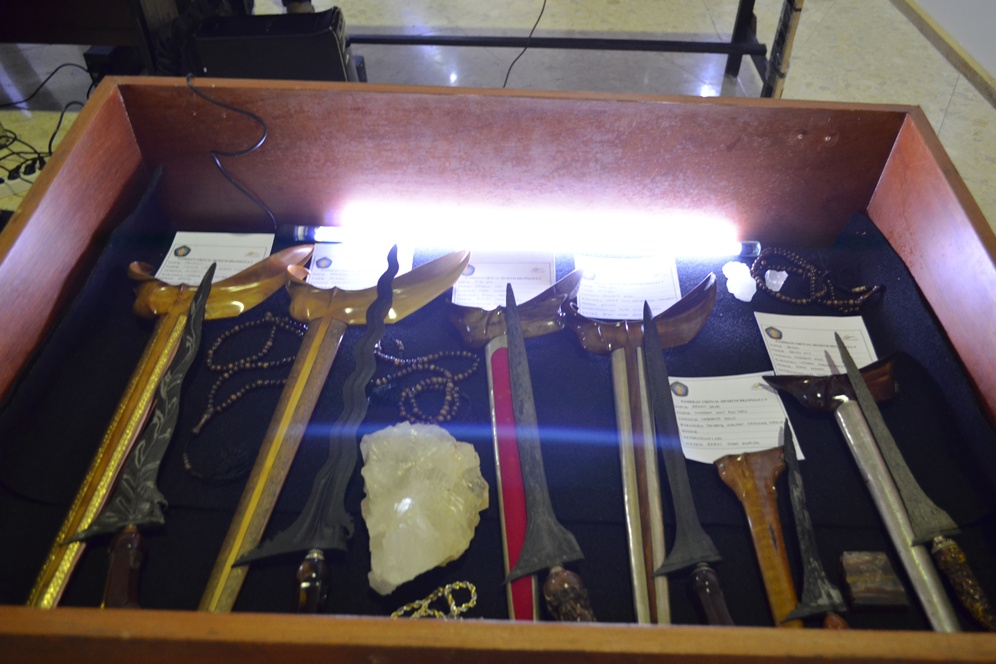 Sederetan keris Majapahit koleksi Galeri Jagat Gumelar yang dipajang saat pameran berlangsung.