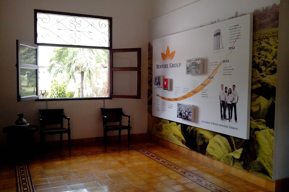 Sudut ruangan museum di mana terdapat papan yang berisi perjalanan Bentoel dari tahun ke tahun.