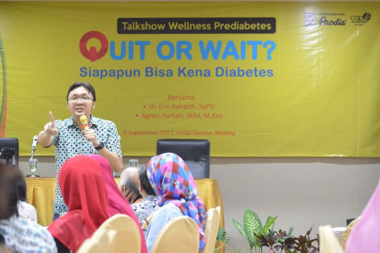 Mengajak masyarakat berpartisipasi aktif dalam tindak pencegahan prediabetes, Laboratorium Klinik Prodia Malang menggelar acara talkshow bertajuk "Wellness Prediabetes", Sabtu (9/9) di Hotel Savana. Talkshow kali ini menghadirkan dua pakar kesehatan sebagai narasumber utama, yakni dr. Eric Rahardi, SpPD dan Agnes Hartati, SKM,M.Kes. Kota Malang sendiri menjadi kota ke-17 yang menjadi lokasi kampanye kesehatan, yang digelar Prodia di 22 kota besar di Indonesia.