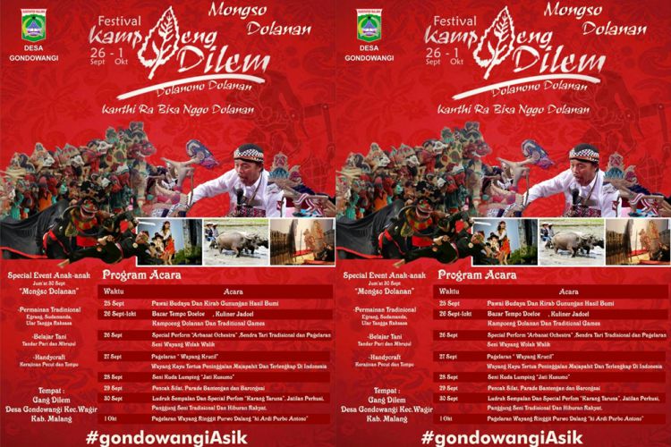 Festival Kampung Dilem ini sendiri diselenggarakn dan didukung oleh Pemerintah Desa Gondowangi, kecamatan Wagir, Kabupaten Malang. Danis Setya Budi, Kepala Desa Gondowangi menyatakan bahwa festival ini bermaksud untuk melakukan perubahan sikap melalui penggunaan kembali permainan tradisional.