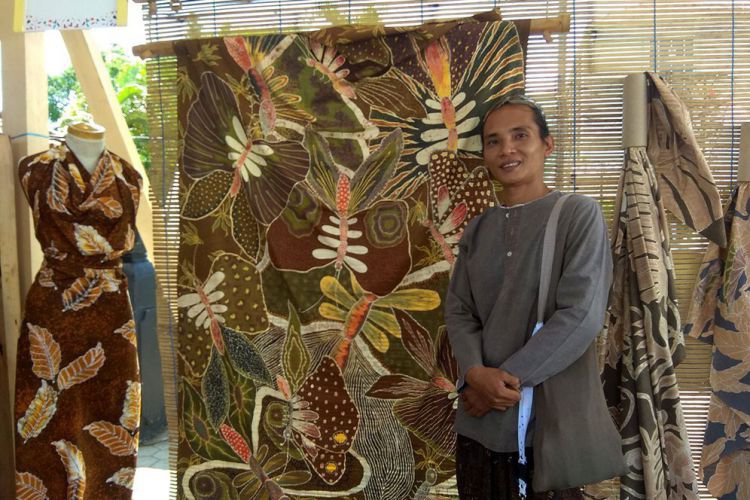 Ferry menunjukkan karya master piecenya yang diberi nama motif 'Kasampurnan'. Batik dengan warna lembut dan kebiruan itu bercorak kupu-kupu dengan bunga kenanga berada di sela-selanya.