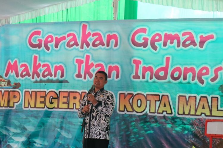 Merdeka.com, Malang - Memperingati Hari Ikan Se Dunia dan Hari Kesehatan Nasional, dilaksanakan Gerakan Gemar Makan Ikan di Sekolah, Sabtu (31/12). Acara yang digelar di SMPN 10 Malang itu, dihadiri oleh Walikota Malang, H. Mochammad Anton, Kepala Dinas Pendidikan Kota Malang, Zubaidah, Kepala SKPD di Lingkungan Pemerintah Kota Malang, dan seluruh Kepala Sekolah tingkat SMP dan SMA se Kota Malang.