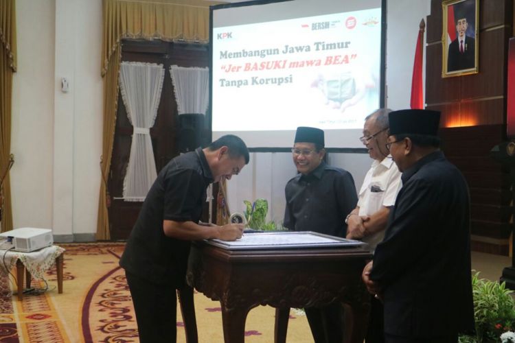 Acara yang diinisiasi Komisi Pemberantasan Korupsi (KPK) itu dihadiri Ketua KPK, Agus Raharjo, Gubernur Jawa Timur Soekarwo, Ketua DPRD Provinsi Jawa Timur Abdul Halim Iskandar.