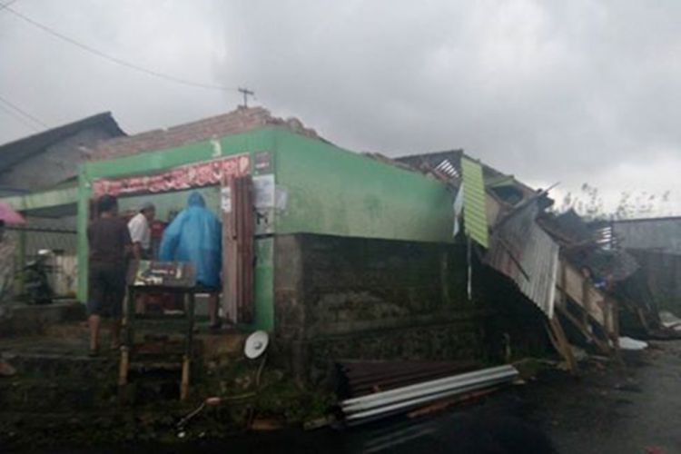 Hujan deras disertai angin puting beliung terjang Pujon pada kamis (5/1). Belasan rumah mengalami kerusakan karena terpaan angin ini.