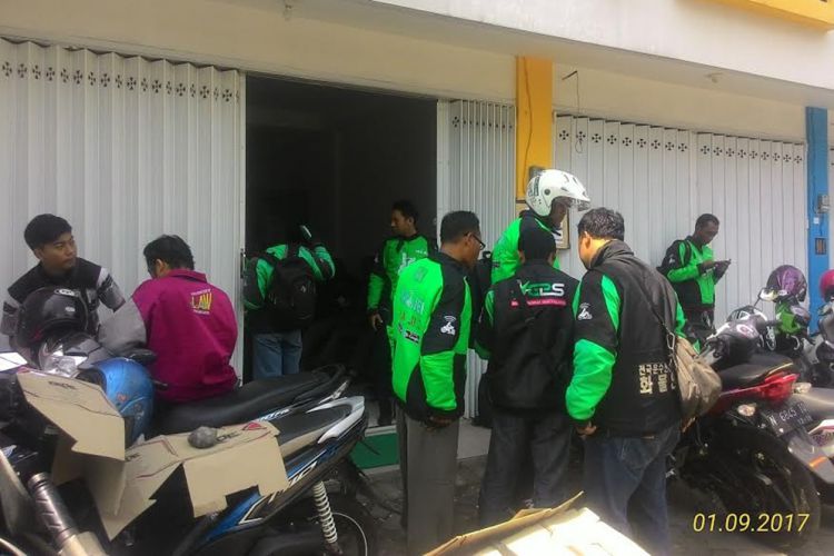 Aplikasi GO-JEK mengalami masalah, para driver Go-Jek berbondong-bondong mendatangi kantor cabang di Jalan LA Adisucipto Blimbing, Kota Malang.