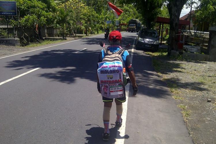 Kusno mengaku mulai berjalan mundur dari Balai Kota Malang sejak 9 September lalu. Dia memperkirakan untuk sampai di Mataram, NTB membutuhkan waktu sampai 25 hari.