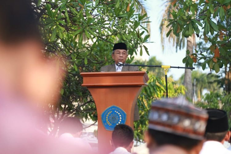 Busyo mengingatkan agar tidak lupa terus mengevaluasi diri dan menjadikan momen-momen sakral, sebagai penanda untuk terus menjadi insan yang mulia. Busyo memberikan tausyiah usai menjalankan salat Iduladha di pelataran Universitas Muhammadiyah Malang (UMM).
