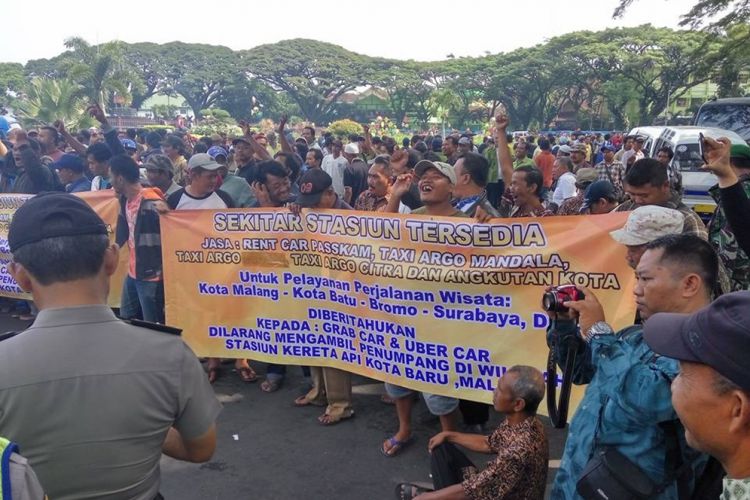 "Aplikasinya di tutup sementara, Kalau taksi online dan Go-Jek belum berbadan hukum atau disetujui pemerintah mohon untuk ditutup atau dihentikan. Kalau mereka besok atau lusa tetap beroperasi, saya khawatir akan ada bentrok fisik secara horisontal, seperti kemarin," kata Hadi Purwanto I Toger, salah satu ketua Jalur Angkot di Kota Malang.