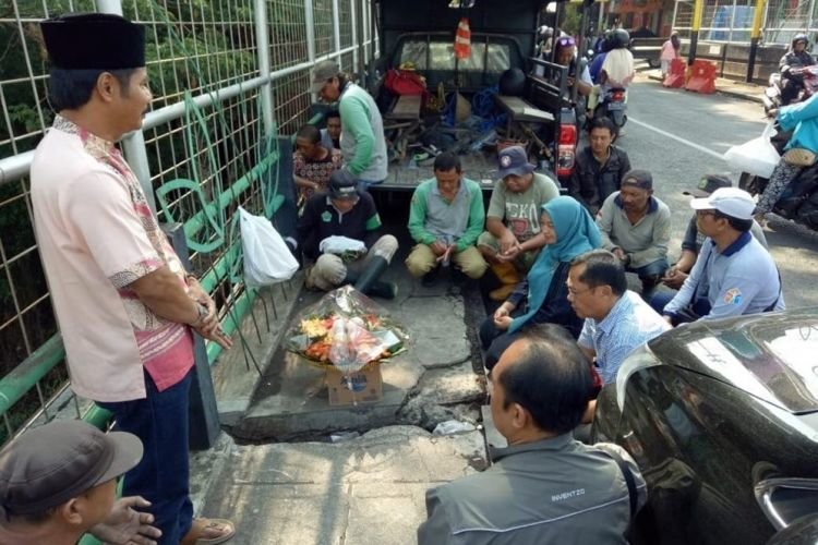 Doa bersama menjadi awal mulainya rekonstruksi pembangunan jembatan Muharto Kota Malang, Jumat (22/11). Estimasi pelaksanaan pengerjaan diselesaikan dalam kurun waktu satu bulan.