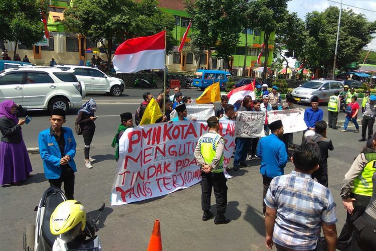 Demo mahasiswa di depan Mapolres Malang. ©2017 merdeka.com/darmadi sasongko. ©2017 Merdeka.com