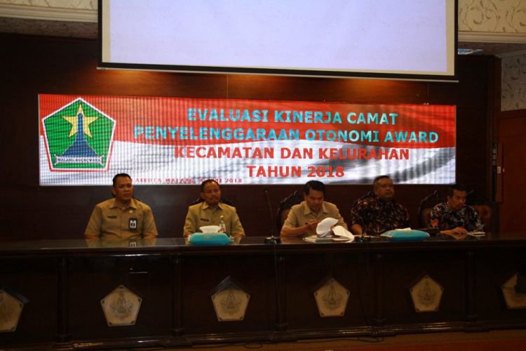 Evaluasi dan Penilaian Kinerja 5 Kecamatan di Lingkungan Pemerintah Kota Malang digelar sebagai bagian penyelenggaraan Otonomi Award Kecamatan dan Kelurahan di Kota Malang 2018.