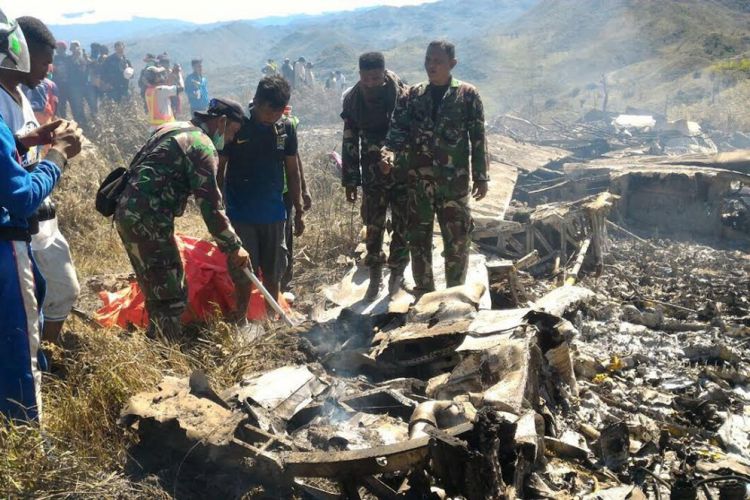 Pesawat TNI Angkatan Udara (AU) jenis Hercules yang jatuh di Wamena ditemukan dalam kondisi hancur.
