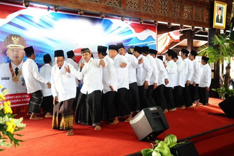 Merdeka.com, Malang - Bupati Malang Rendra Kresna secara resmi membuka acara Lomba Tari Saman dalam rangka memperingati Hari Jadi ke-1256 kabupaten Malang, di Pendopo Kabupaten Malang, Senin (24/10). Lomba tari saman ini berlangsung selama enam hari dari tanggal 24-29 Oktober 2016. Lomba ini diikuti oleh 76 group perwakilan peserta dari masing-masing Satuan Kerja Perangkat Dinas (SKPD) dan Kecamatan se-Kabupaten Malang.