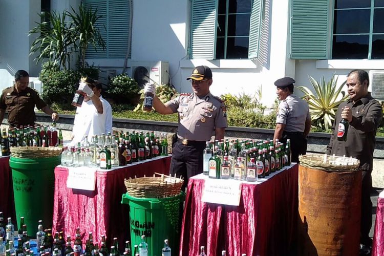 Menjelang Ramadhan, ribuan minuman keras dimusnahkan di halaman Balaikota Malang.