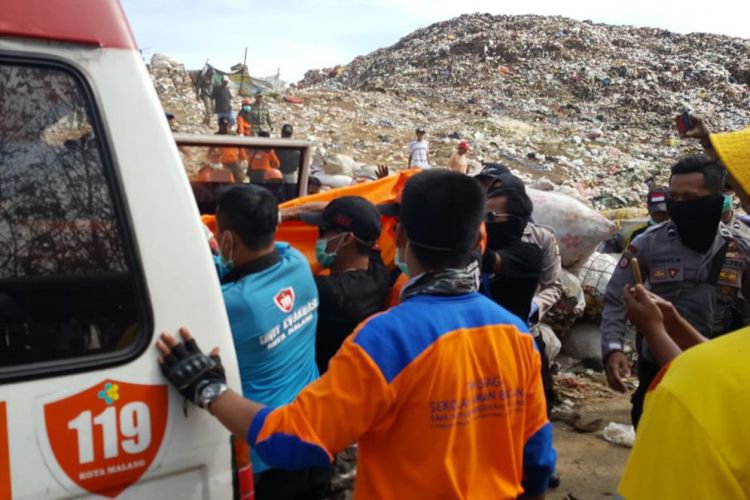 Jenazah Agus Sujarno (45), pemulung yang tertimbun sampah di TPA Supit Urang Kota Malang akhirnya ditemukan. Tim SAR gabungan berhasil menemukan korban yang sudah sekitar tiga hari terkubur dalam timbunan sampah.
