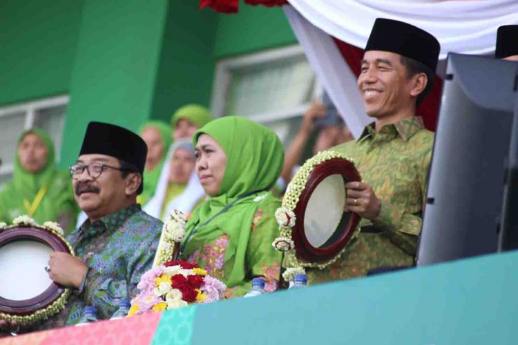 "Tidak hanya Bu Khofifah, tapi semua Muslimat NU bekerja cepat," tambah Jokowi.