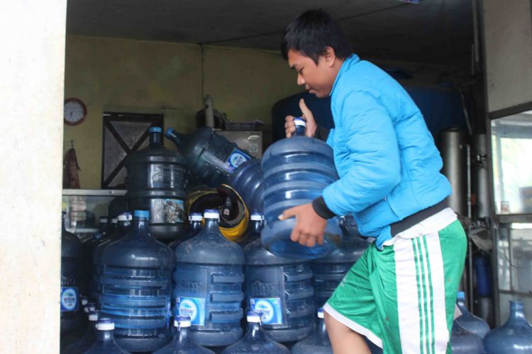 Merdeka.com, Malang - Toko Sumber Kasih harus kehilangan puluhan galon air mineral akibat banjir bandang Pasuruan. Galon dan isinya yang dijajakan di depan kiosnya terbawa arus air entah ke mana.