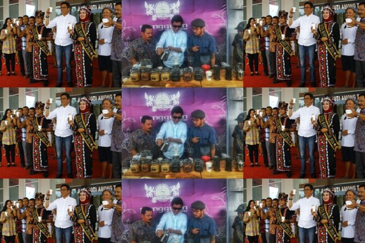 Merdeka.com, Malang - Serangkaian acara telah digelar untuk memeriahkan Hari Jadi Kota Batu ke-15, Kali ini giliran festival kopi yang turut andil dalam perayaan hari bahagia kota Batu. Bertajuk "Festival Coffe Nusantara Kopineka Tunggal Ika", festival kopi tersebut di gelar di halaman Balaikota Among Tani, Sabtu (19/11). Peresmian acara disimbolkan dengan minum kopi serentak yang diikuti oleh Wali Kota Batu, Eddy Rumpoko, Forkompinda, SKPD, Duta Kopi Gayo, dan perwakilan peserta dari berbagai daerah.