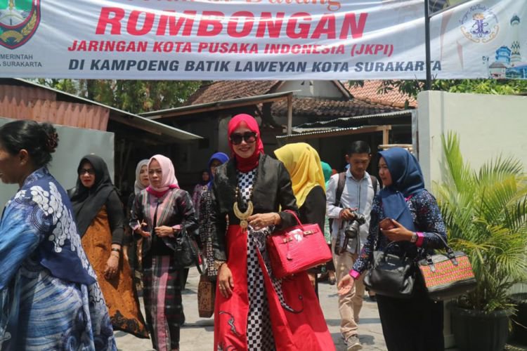 Widayati Sutiaji bersama rombongan Tim Penggerak PKK dari daerah lain mengunjungi Kampung Batik Laweyan Surakarta.