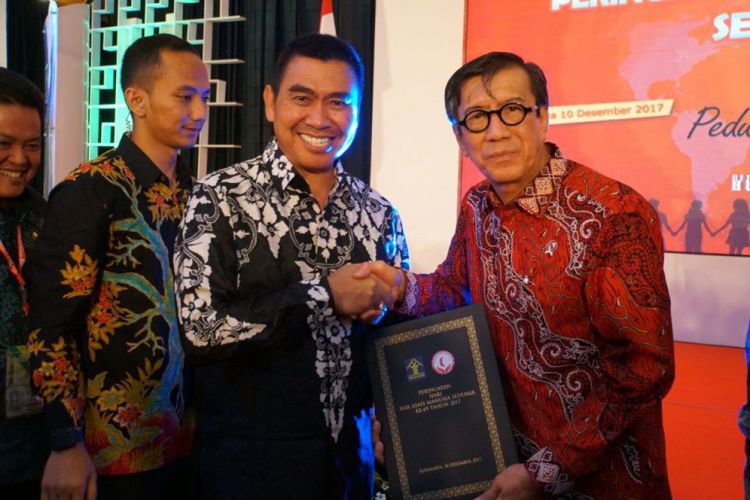 Merdeka.com, Malang - Kota Malang menerima penghargaan Bidang Hak Asasi Manusia (HAM) dalam puncak peringatan Hari HAM Se-Dunia Ke-69 yang dipusatkan di Solo, Jawa Tengah, Minggu (10/12). Penghargaan diterima Wali Kota Malang, Moch Anton dari Menteri Hukum dan HAM Yasonna H Laoly di acara peringatan Hari HAM se-dunia tahun 2017 di Hotel The Sunan, Solo, Minggu (10/12).