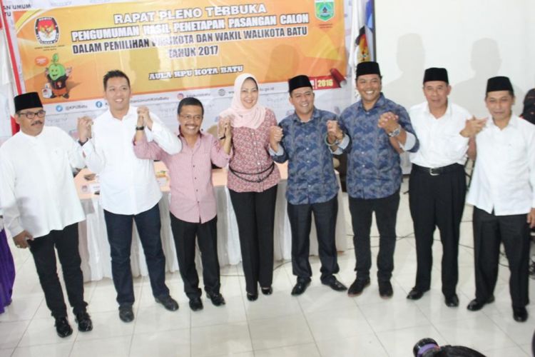 Merdeka.com, Malang - Empat pasangan calon Walikota dan Wakil Walikota Batu telah ditetapkan maju ke Pilkada 2017. Komisi Pemilihan Umum (KPU) Kota Batu menetapkan empat orang pasangan calon (Paslon) tersebut melalui sebuah rapat pleno terbuka.