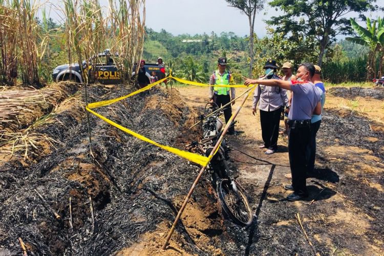 Dua sepeda motor tersebut milik Purwanto (35) dan Edo Prasetyo (23) yang sedang mencari pakan untuk ternaknya. Dua sepeda motor jenis Honda GL itu hanya menyisakan kerangka gosong, habis terbakar.