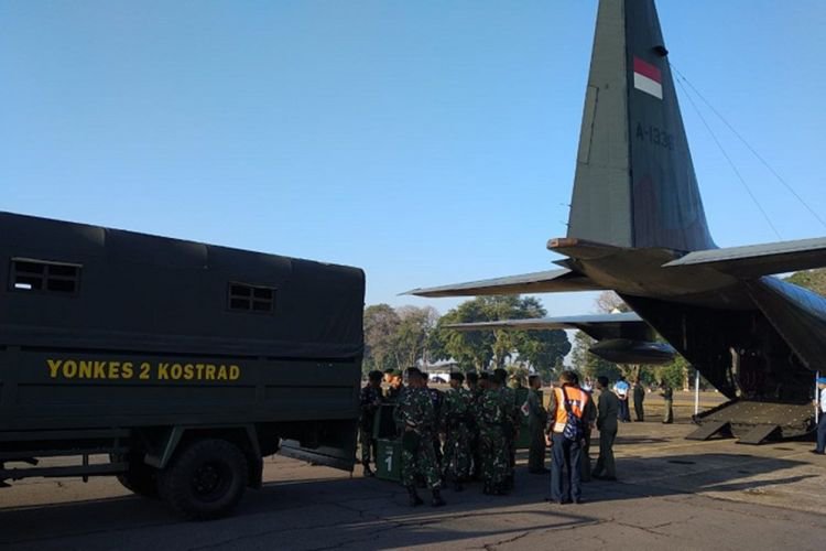 Pesawat jenis angkut ini diterbangkan dari Lanud Abdulrahman Saleh menuju Lombok dengan mengangkut 64 personel Batalyon Kesehatan 2 Kostrad Malang. Pesawat juga mengangkut bantuan obat-obatan, makanan, minuman, tenda, fielbad, genset dengan berat sekitar 8 ton.