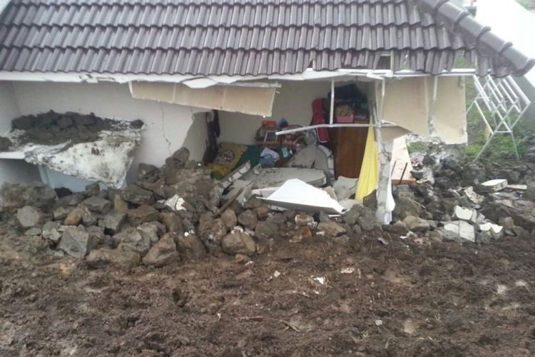"Akibat kejadian material longsor menimpa dinding rumah bagian belakang hingga jebol dan menimbun 2 kamar kos," kata Sutopo Purwo Nugroho, Kepala Pusat Data Informasi dan Humas BNPB, Minggu (12/11).