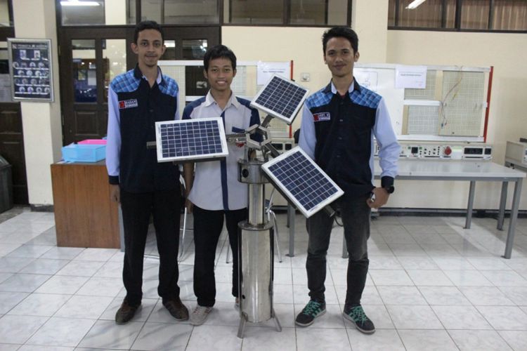 Jadi, nantinya alat itu akan otomatis mengikuti arah sinar matahari. Ketika pagi alat itu akan menghadap timur, lalu mengikuti posisi matahari sampai sore. Ketika sore, posisinya akan lurus menghadap ke atas. Ketika tegak lurus, lampu akan menyala selama satu malam.