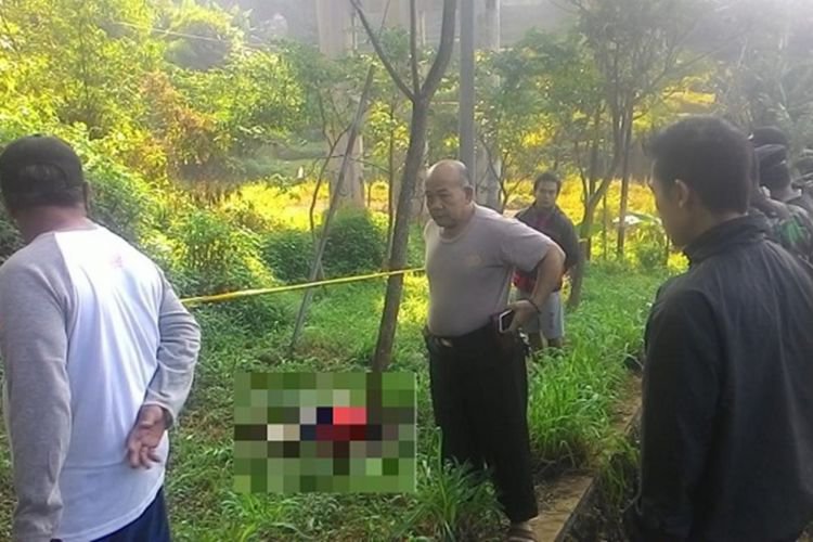 Tubuh korban yang sudah tidak bernyawa berada di dasar jembatan dengan kedalaman sekitar 20 meter. Korban yang mengenakan celana pendek warna biru terlungkup di atas rerumputan dengan darah yang sudah mengering.
