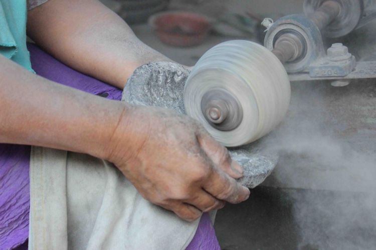 "Bentuknya sampai setengah jadi. Baru kemudian dihaluskan dengan mesin gerinda," kata Riyati.