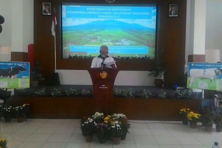 Merdeka.com, Malang - Balai Besar Inseminasi Buatan (BBIB) Singosari mendapatkan sertifikat hasil zuriat sapi perah nasional dari Direktur Pembibitan dan Produksi Ternak Dirjen Peternakan dan Kesehatan Hewan, Sabtu (9/12). Pencapaian ini diharapkan mampu membangkitkan optimisme pemerintah dan masyarakat meningkatkan produksi sapi pejantan unggul, sehingga menghasilkan kualitas susu yang prima. Selain itu, Pemerintah Kabupaten (Pemkab) Malang berharap BBIB dapat ambil bagian dalam pengembangan wisata edukasi di wilayah itu.