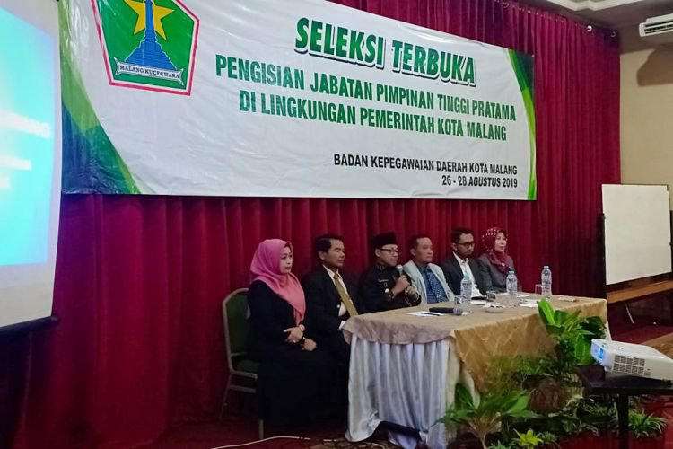 Seleksi Terbuka Pengisian Jabatan Pimpinan Tinggi Pratama Pemkot Malang berlangsung di Hotel Gajahmada Graha Malang, Senin (26/8). Pemkot Malang dalam menyelenggarakan seleksi, selain memiliki tim sendiri juga melibatkan unsur akademisi yakni UM, UB dan Unisma.