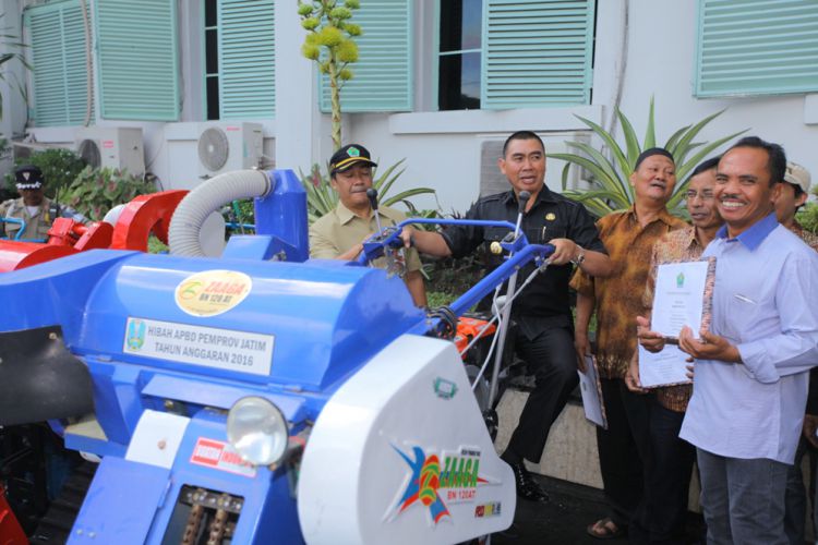 Walikota Malang, H. Mochammad Anton menyerahkan beberapa alat mesin pertanian pada tujuh kelompok tani di kota Malang.